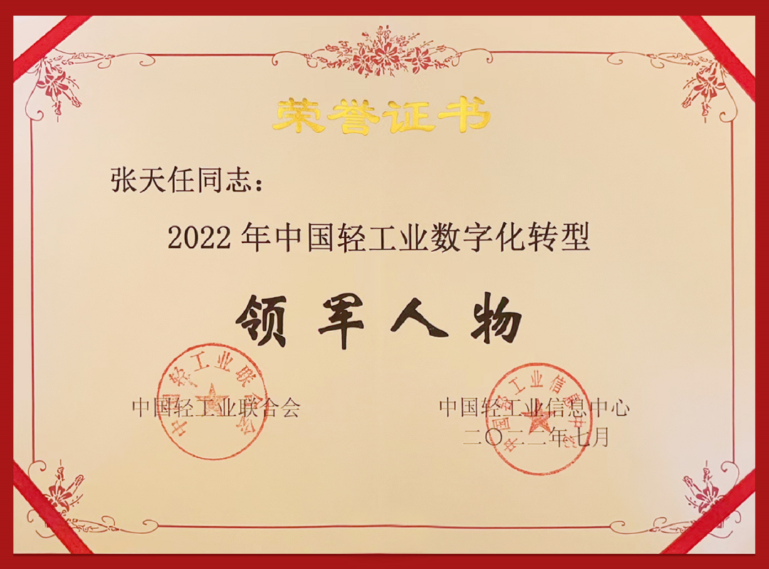● 7月27日,在第十二届中国轻工业信息化大会上,leyu.com乐鱼控股集团获得“中国轻工业数字化转型先进单位”,张天任董事长获得“中国轻工业数字化转型领军人物”。